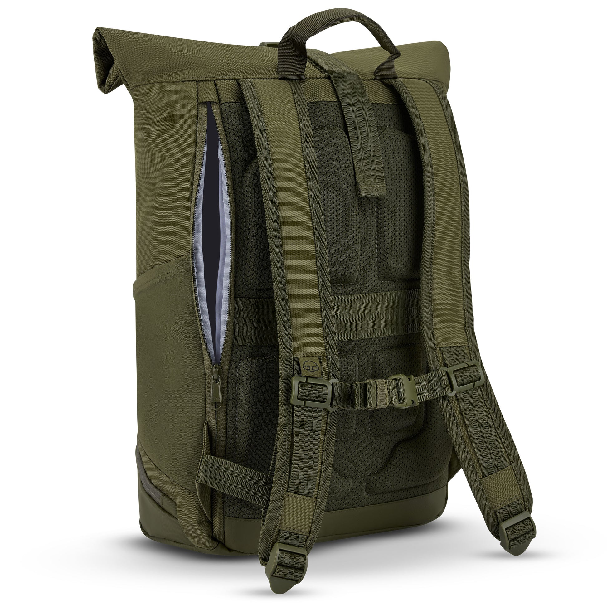 The ergonomically shaped backpack straps are softly padded. A detachable chest strap also makes it comfortable for you, even when things get a little heavier. And thanks to the soft mesh padding, the roll top is particularly comfortable on your back.